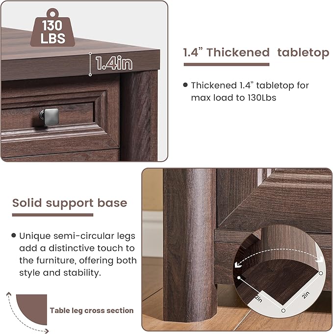 - 【Rustic Farmhouse Desk】This farmhouse executive desk blends cozy countryside warmth with sleek business elegance, making it a versatile addition to any home office. The half-curved legs and drawer knobs add a touch of refined simplicity.