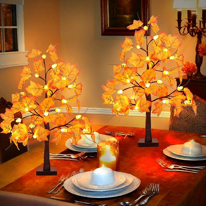 - Versatile Fall & Thanksgiving Decor - Perfect for decorating your fireplace, dining table, living room, kitchen, garden, office, or coffee shop, these battery-operated Thanksgiving maple trees add festive charm to any space. Also makes a thoughtful autumn gift for friends and family