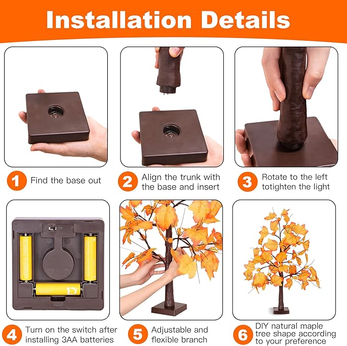 - Adjustable Bendable Branches - Our lighted maple tree decor has adjustable branches that you can easily shape to your liking. Whether used as a tabletop centerpiece, mantel decoration, or window accent, this lighted fall tree adds a cozy and personalized autumn touch