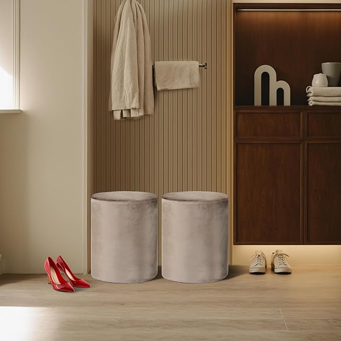Get Set Style Modern Round Ottoman with Soft Padded Seat, Multifunctional Vanity Stool for Makeup, Upholstered Footrest Stool Ottoman Foot Stool for Living Room, Bedroom