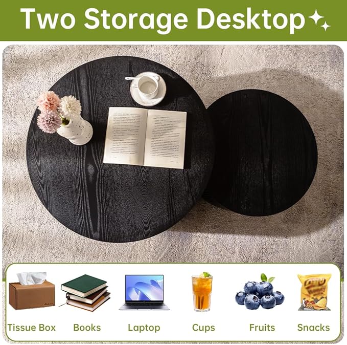 - Unique Design: This nesting coffee table set of 2 features a unique classic round design. The nesting coffee tables for living room create a harmonious and modern aesthetic with the combination of simple elegant lines and smooth curves. Additionally, the nesting tables make your living space more flexible, dynamic, and full of personality and creativity.