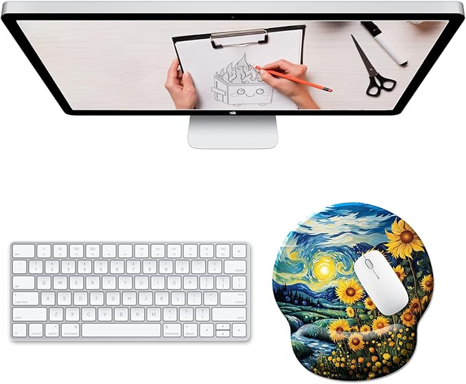 - Novelty Mouse Pad: This mouse pad with wrist rest features a sunflower pattern design, which will bring you more happiness while working, studying or playing. The mouse pad for desk also fits all types of desktop, keyboard, laptop and wireless computer mouse