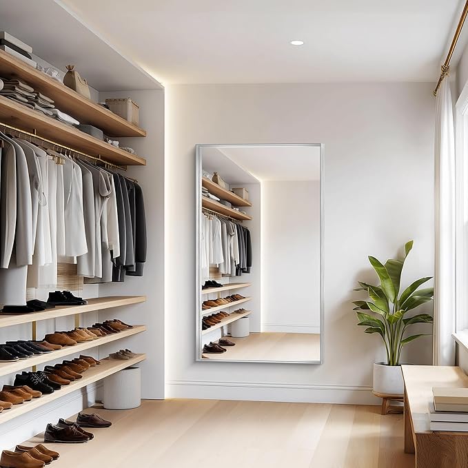 - Sleek & Sturdy Aluminum Alloy Frame This elegant silver bathroom mirror features a lightweight yet durable aluminum alloy frame, designed to resist deformation, chipping, and corrosion. The slim metallic profile adds a modern touch, elevating your space with a luxurious finish. Perfect as a wall-mounted or hanging mirror, it combines strength, style, and longevity