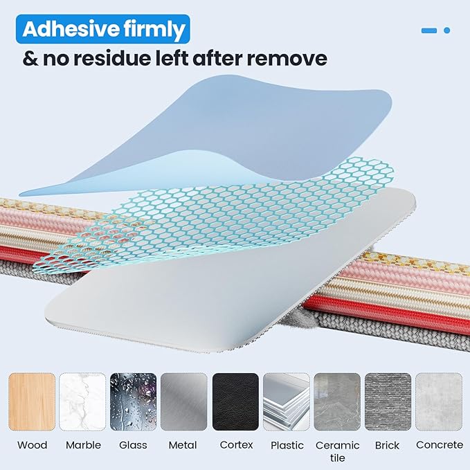 - 【Strong & Removable Adhesive】The upgraded acrylic adhesive pads stick firmly to most smooth surfaces (wood, glass, tiles, etc.) while remaining residue-free upon removal.