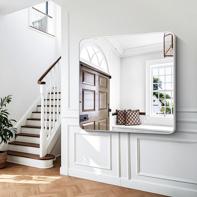 - ROUNDED CORNER DESIGN:The 48x48 inches mirror features an elegant rounded corner design and measures 48" x 48" Its unique shape adds a touch of sophistication and upscale beauty to your home.