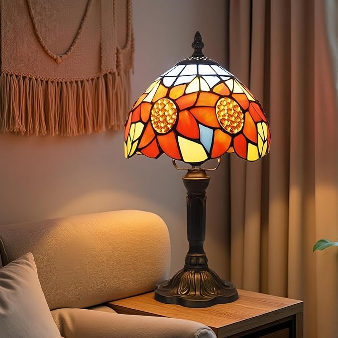 - 【Sunflower Tiffany Style Lamp】This handmade stained glass masterpiece bathes your space in eternal sunlight. Each bright petal can capture a warm glow to combat fatigue and stimulate happiness - perfect for use as a bedside lamp, as well as in dark offices or any place where mood needs to be elevated.