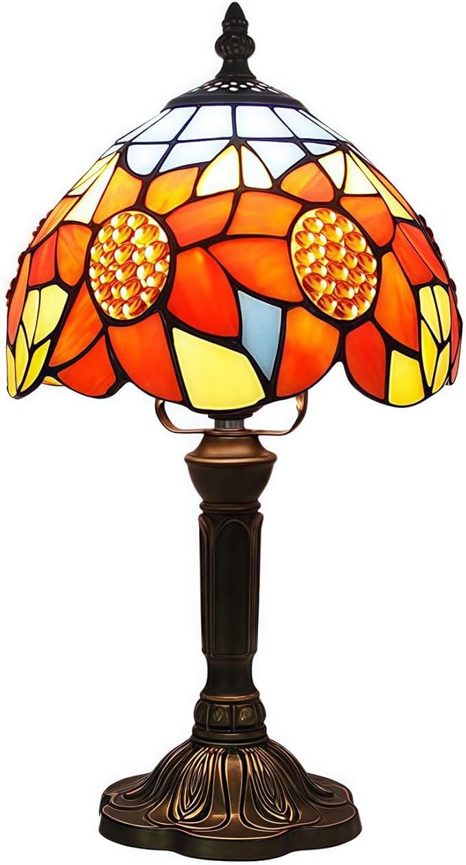 Tiffany Table Lamp Sunflower Stained Glass Lamp,8" Small Tiffany Lamp for Living Room Home,Bedroom Bedside Vintage Lamp for Office Dorm Bar Decor Gift,Included LED Bulb