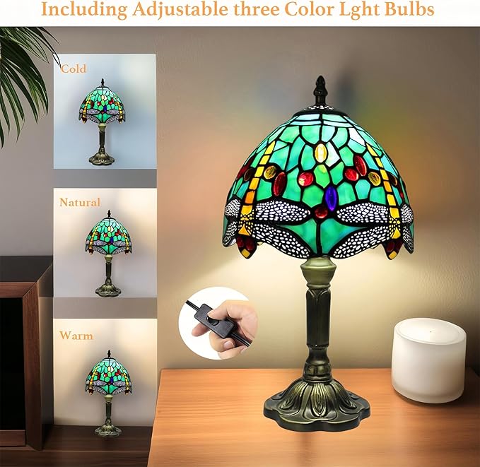 - 【Energy Saving LED Tiffany Lamp】Equipped with an E26 tri-color bulb, this lamp lets you effortlessly switch color temperatures with a single button press. Customize the ambiance to your preference, or swap in your favorite E26 bulb to personalize your Tiffany-style masterpiece.