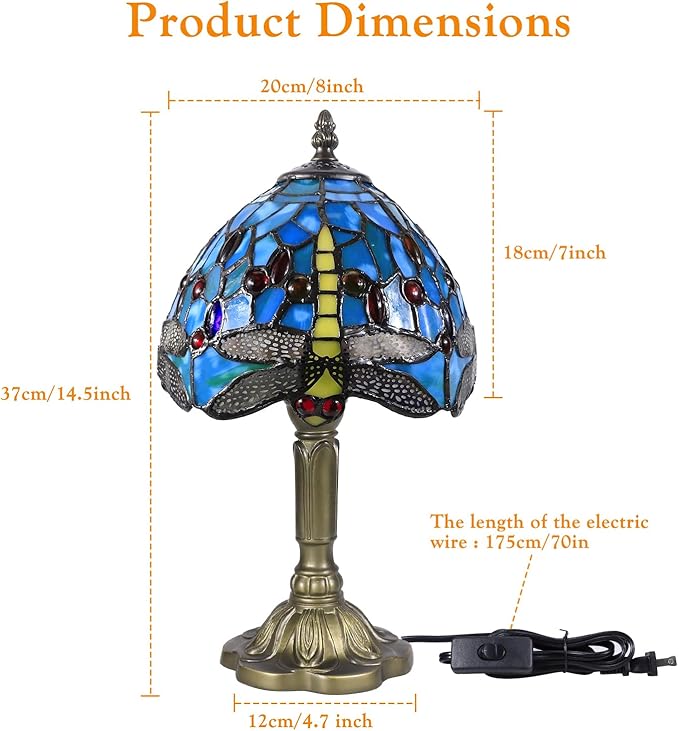 - 【Dragonfly Tiffany Style Lamp】 this stained glass lamp, designed to uplift your mood. Its warm, eye-friendly glow soothes screen-weary eyes at your desk while transforming bedrooms into calming sanctuaries.Ideal for office workers seeking relief from digital eye strain, anxiety sufferers craving serene ambiance. More than decor: it’s your personal fatigue-fighting oasis that turns any space - bedside table, living room shelf, or home office - into a haven of visual comfort and tranquil joy.