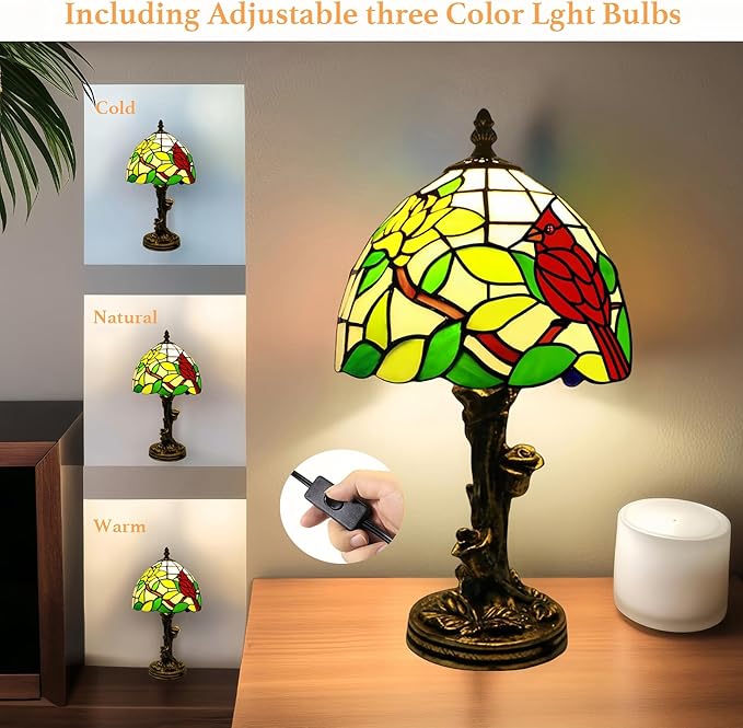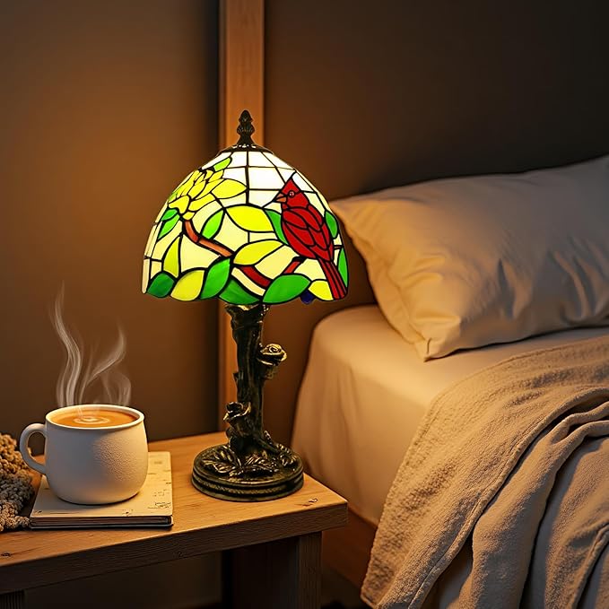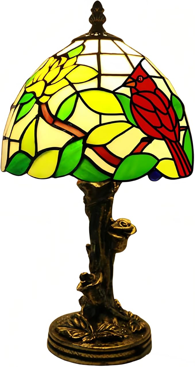 Tiffany Style Table Lamp Cardinal Stained Glass Lamp,8" Tiffany Lamp for Living Room Home,Bedroom Bedside Vintage Lamp for Office Dorm Bar Decor Gift,Included LED Bulb