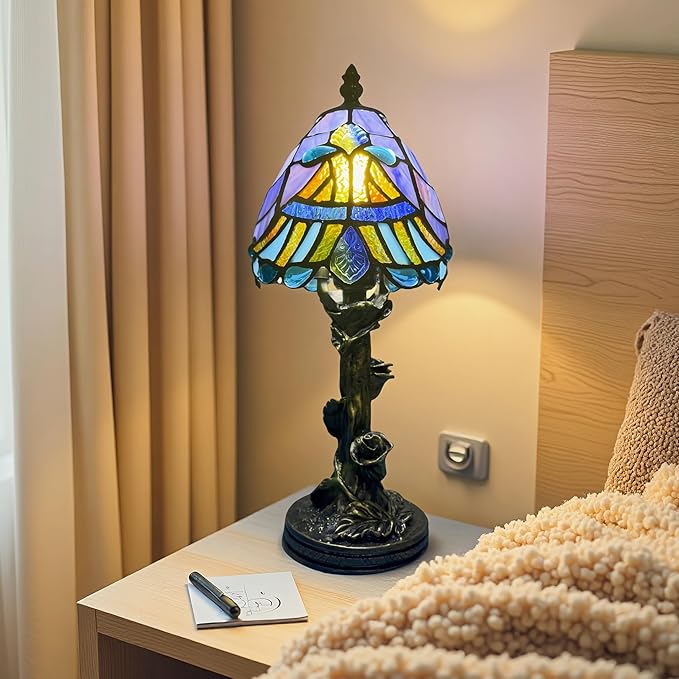 - 【Handmade Tiffany Desk Lamp】Meticulously cut from vibrant colored glass and crafted by skilled artisans, this charming mini desk lamp is a unique piece of art. When lit, its soft, changing light casts on your walls, creating a deeply soothing ambiance. Perfect for your bedside, the Little Tiffany lamp is an exquisite choice for mood and style.