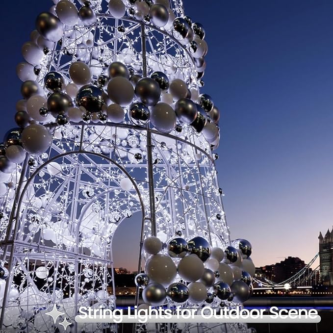 - Ultra-Bright and Durable Battery Powered String Lights: Each string light is 16.5 feet, features 50 super bright LEDs and a waterproof battery case with 8 lighting modes to ensure longevity and reliability. The cool white Christmas lights emit a bright, modern glow in the dark, making them an ideal choice for indoor and outdoor decorations. These fairy lights are perfect for Christmas, birthdays, parties, weddings, creating a cozy and joyful atmosphere.