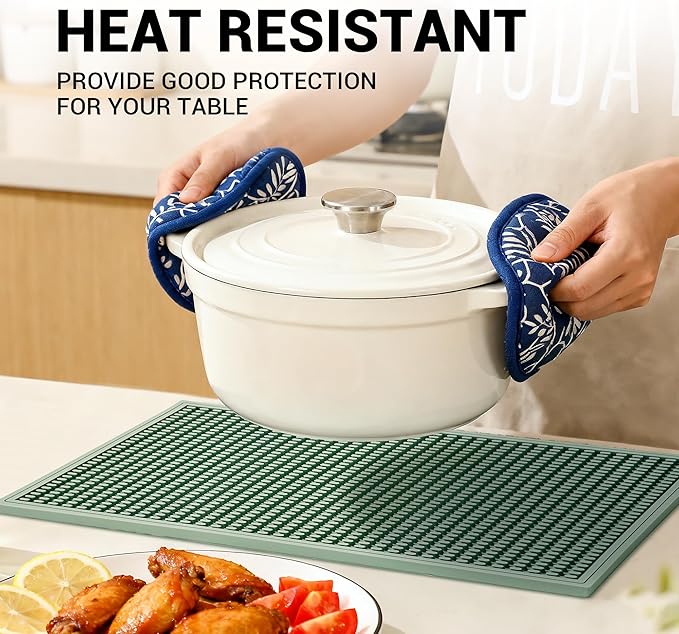 - Multi-Functional & Space-Saving: More than just a dish drying mat, it doubles as a trivet, hot pad, spoon rest, or even a sink liner. The flexible silicone drying mat for kitchen counter rolls or folds for compact storage, making it perfect for small kitchens, RVs, or commercial use. A must-have for clutter-free countertops!