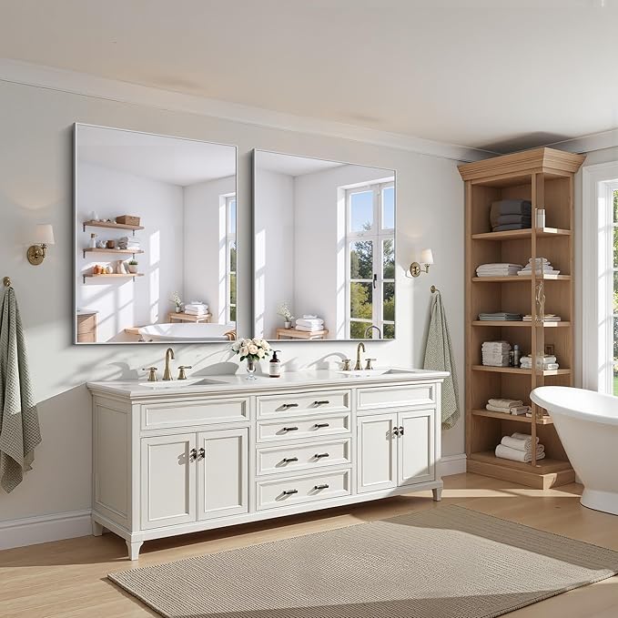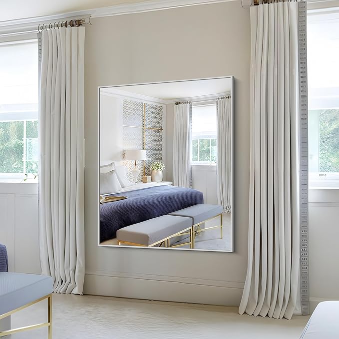 - MODERN DESIGN : KOCUUY 40x48 silver vanity mirror is with innovative design which gives the wall mirror a more fashion feel. With a classic square corner, the wall mounted mirror allows for creativity and functionality in bathroom, bedroom, entryway and anywhere else. Let your living space be an expression of your personal style, not limited to modern or contemporary, farmhouse or industrial