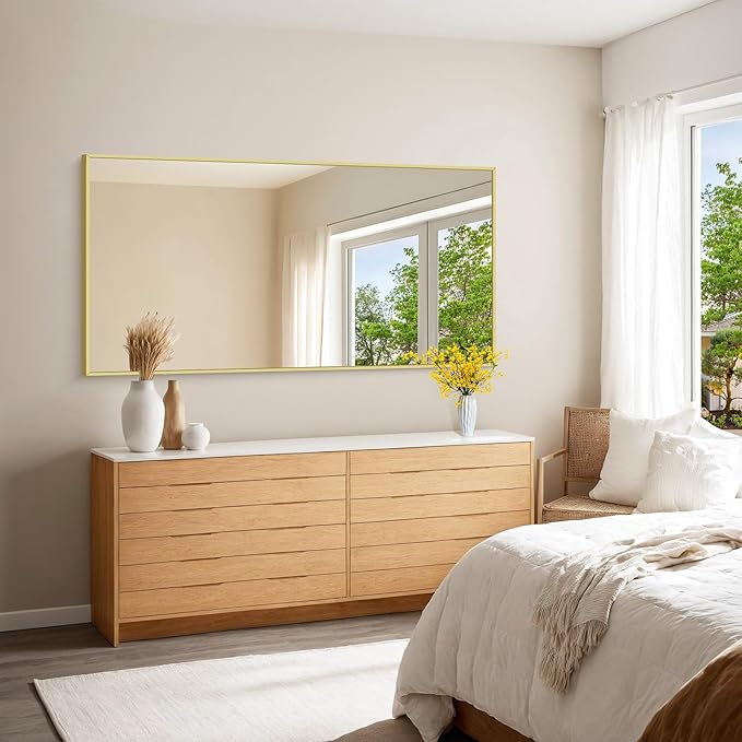 KOCUUY Large Gold Bathroom Mirror, 60x30 inch Rectangular Mirror for Bathroom Sink, Oversized Wall Mirror with Metal Gold Frame for Living Room, Farmhouse, Entryway, Hang Horizontal/Vertical