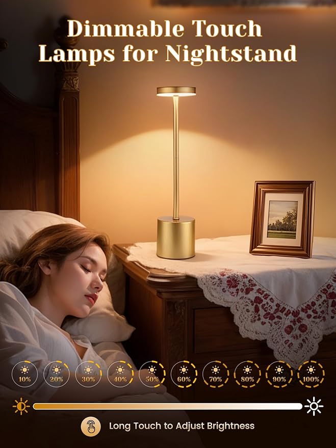 - 【Rechargeable Lamps Cordless Table Lamps Rechargeable Lights for Home】The battery led lights, wireless led lights battery operated lights emit flicker-free LED light. Eye-caring small lamps for small spaces, wireless lights, lampara recargable protects yr eyes! Lámpara recargable is also a dimmable touch light, led lamps, lampara recargable para apagones, battery operated lamps cordless lamps for living room. Just touch switch to change the brightness of touch lamp from bright to soft, table lamp for desk suit for all scenes. Touch table lamp is bright enough for portable lights for home, battery operated table lamp, buffet lamps, small lamp for nightstand lamp, bedside lamps set of 2.