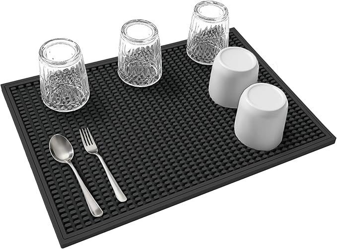 - Non-Slip & Secure Grip: Our dish drying mat boasts a textured surface and raised edges to keep cups, glasses, and bottles firmly in place, even when wet. Ideal for bar mats for bartending, coffee stations, or as a dish drying mat, The dish drying mats design prevents slips, it ensures stability during hectic shifts or lively gatherings.