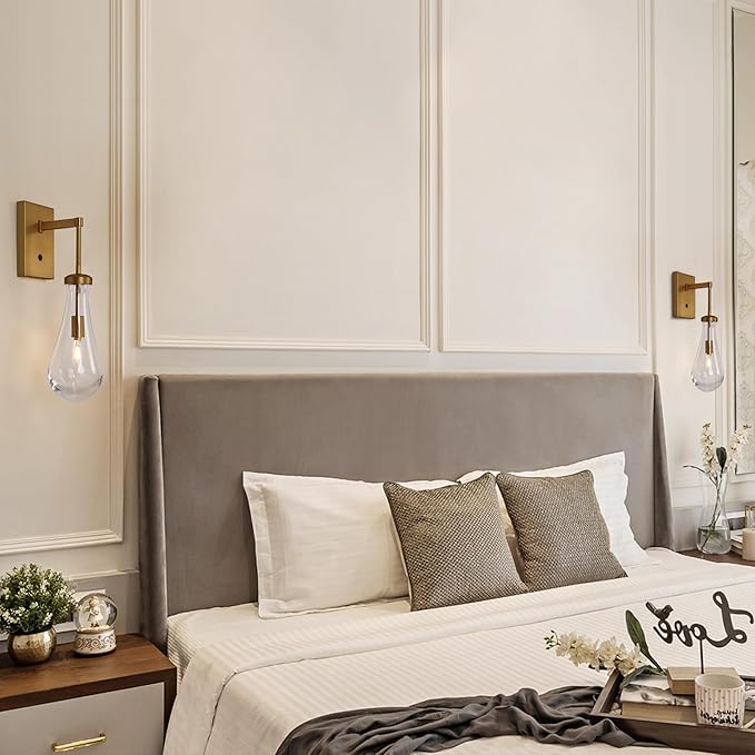 - Handmade Raindrop Glass Lampshade: The brass wall sconces have a unique and beautiful raindrop glass shade can not only light up the darkness better but also decorate your house well. Whether it's a modern style decoration or a vintage farmhouse style, these clear glass wall sconces can fit in perfectly.