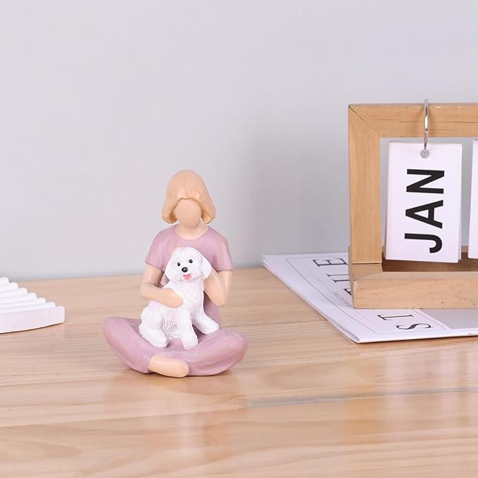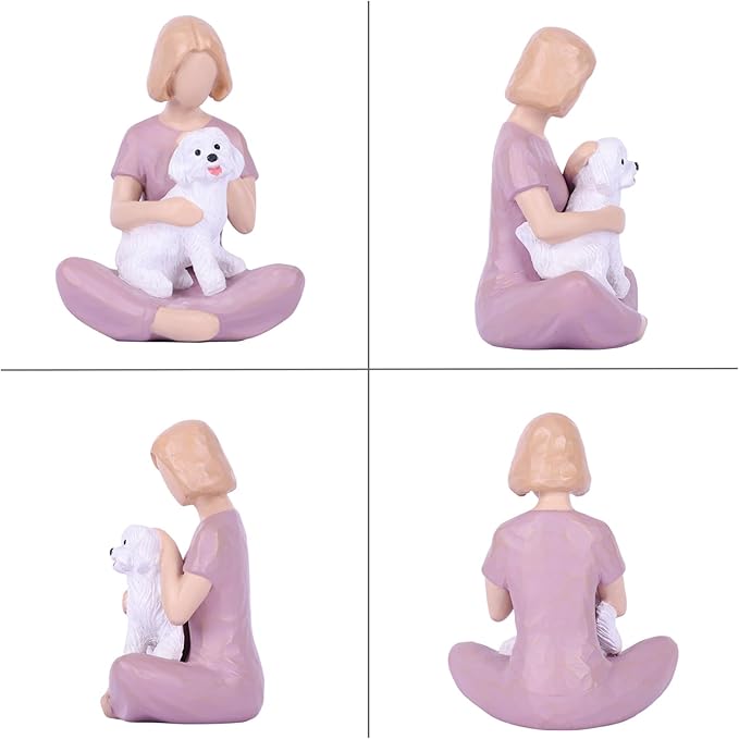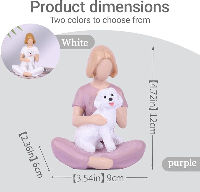 - "【Emotional Tribute to a Beloved Pet】 This girl and dog figurine captures the warmth and loyalty shared between a woman and her furry friend. A heartfelt dog memorial statue, it brings back cherished memories for pet lovers."