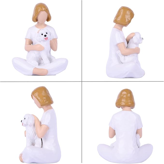 - 【Emotional Tribute to a Beloved Pet】 This girl and dog figurine captures the warmth and loyalty shared between a woman and her furry friend. A heartfelt dog memorial statue, it brings back cherished memories for pet lovers."