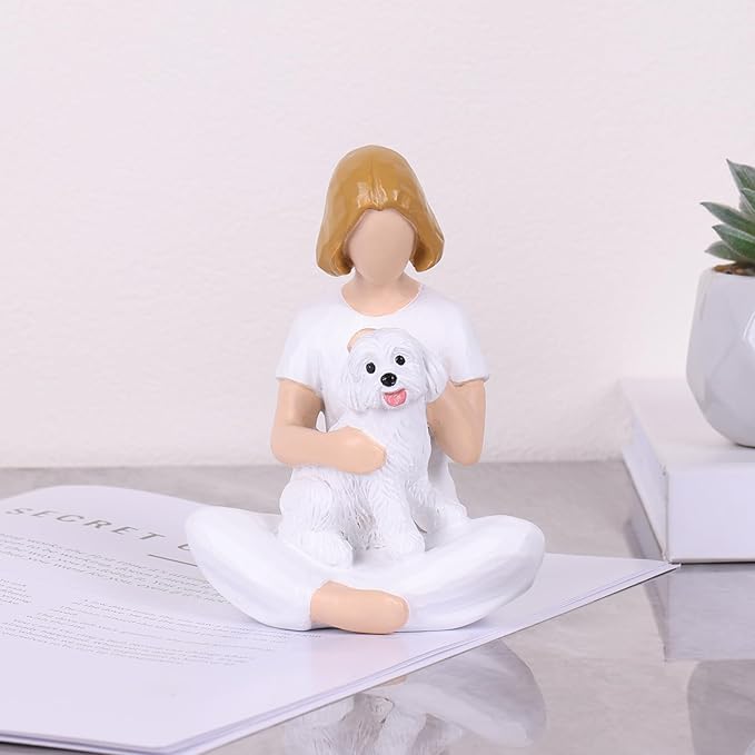 Girl and Dog Figurine Statue – Pet Memorial Gifts for Dog Lovers, Hand-Painted Resin Statue for Tabletop, Shelf, Desk Decor - Sympathy Gift for Birthday, Christmas, Thanksgiving – White