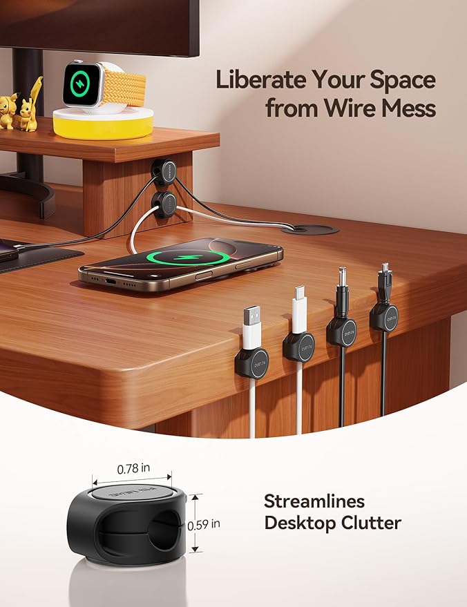 8-Pack Silicone Cord Organizer Magnetic Cable Clips, Adhesive Cable Management Under Desk Wire Hider, FLYLEAD Desktop Cable Organizer for Phone, Office Workspaces Desk Organization Home Accessories