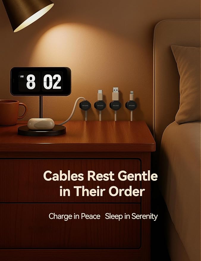 - Special Designed Silicone Magnetic Cable Clips: One-piece silicone molding design FLYLEAD cord organizer with better moldability, the soft silicone material makes this cable organizer more malleable and skin-friendly. After over 10,000 times of tensile tests, the flexible upper and lower joints never broke. With the strongest N55 magnets, covers can be tightly adherent to each other, soft silicone-made FLYLEAD cord holder could embrace cables, which won't squeeze or damage the cables