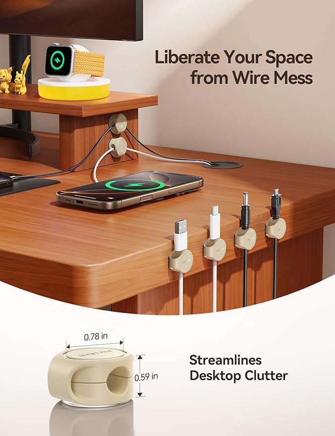 8-Pack Cord Organizer Magnetic Silicone Cable Clips[8 mm Wider Cable Accessible]Desk Cable Management, FLYLEAD Desktop Cord Holder for Nightstand, Office Workspaces Desk Organization Home Accessories