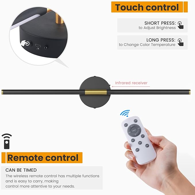 - 【Remote & Touch Control】Enjoy versatile control options with this rechargeable wall sconce, featuring both remote and touch functions. Use the remote to turn the light on/off, adjust brightness, set a timer for 1-6 hours, or switch color temperatures from a distance, or simply tap the button on the fixture for quick adjustments.