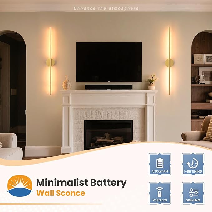 - 【Wireless & Easy to Install】 With a modern minimalist design, this wall sconces set of two is perfect for renters or anyone avoiding complex wiring. The cordless setup allows for quick installation anywhere you need light, such as bedside, in hallways, or in reading corners.