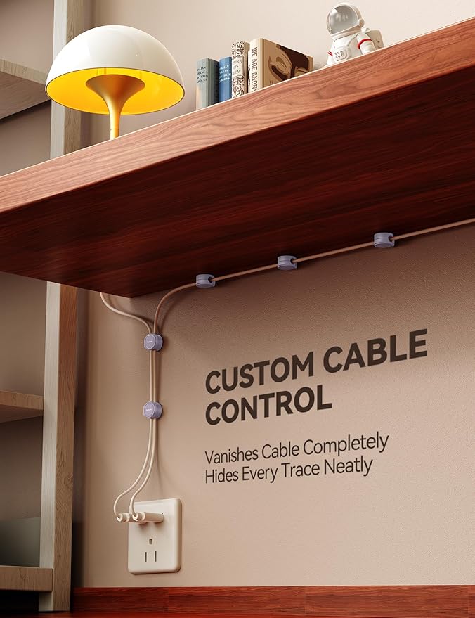 - Wider 8MM Cable Slot Diameter with Wider Cable Accessible Space: FLYLEAD cord management with 8mm cable accessible slot, could hold most thick cords, such as HDMI cable, DisplayPort cable, Cat5e/Cat6, etc. If you need to secure two or three regular wires together, FLYLEAD cord clips can help with that as well