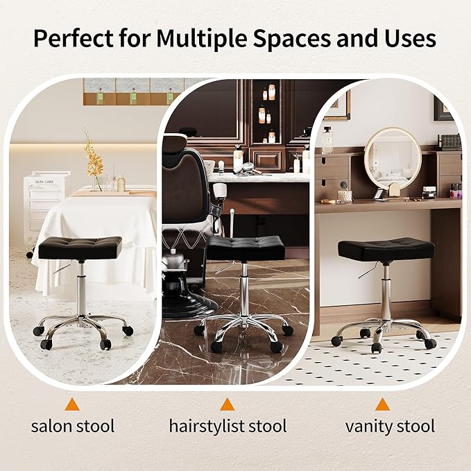 - Multi-Purpose Stool for Home and Work: This rolling stool features adjustable height to accommodate different tasks and users. Suitable for home use at vanities, desks, or kitchens, it offers easy mobility and fits various room styles. In professional settings such as offices, nail salons, barbershops, tattoo studios, beauty salons, medical facilities, or retail spaces, it provides stable seating and supports comfortable positioning during use