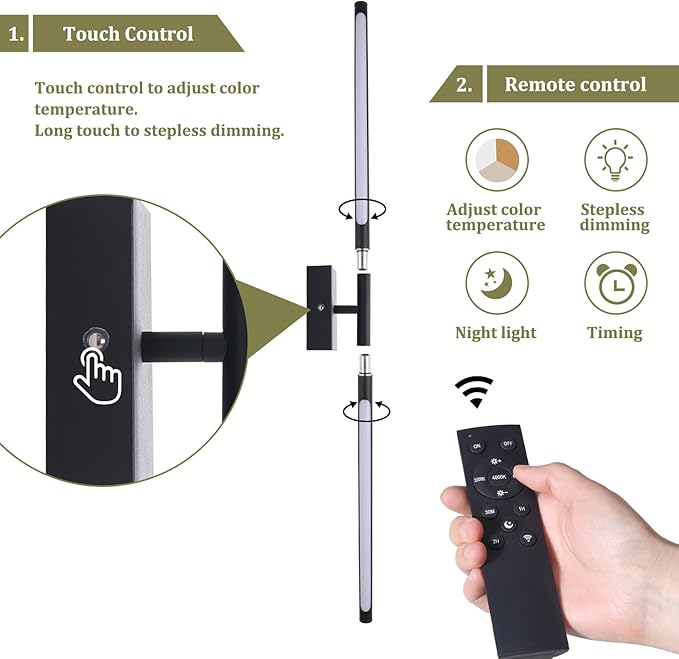 - 【Color Temperature & Dimmable】The wall light offers different color temperature modes(3000K/4000K/6000K),long press the touch switch or remote control for stepless dimming to meet your various needs. In addition, the remote control also comes with a night light function, can create soft light.
