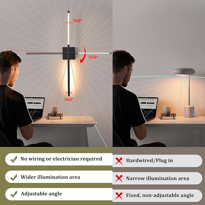 - 【Wide Application】The wall lamp tube can rotate 360° to adjust the light direction for your personalized lighting needs. Modern and simple design style, not only can be used as a reading light, also ideal choice for bedroom, living room, corridor, background wall, entryway, hallway, dining room.