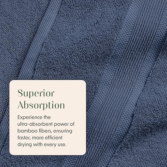 Springtree Home Luxury Viscose from Bamboo Bath Towel Set of 4 | 35% Viscose from Bamboo - 65% Cotton | Absorbent Quick-Dry Towels for Bathroom | Oeko-TEX Standard 100 Cotton | French Blue