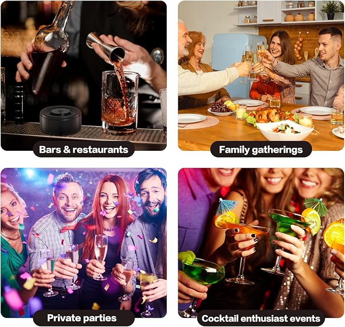 - 【Flameless Electric Cocktail Smoker】One-button start, no butane required, safer & convenient. Creates rich smoky flavor in just 20s. Built-in LED ambient light with 4 modes adds atmosphere for home bars & parties.