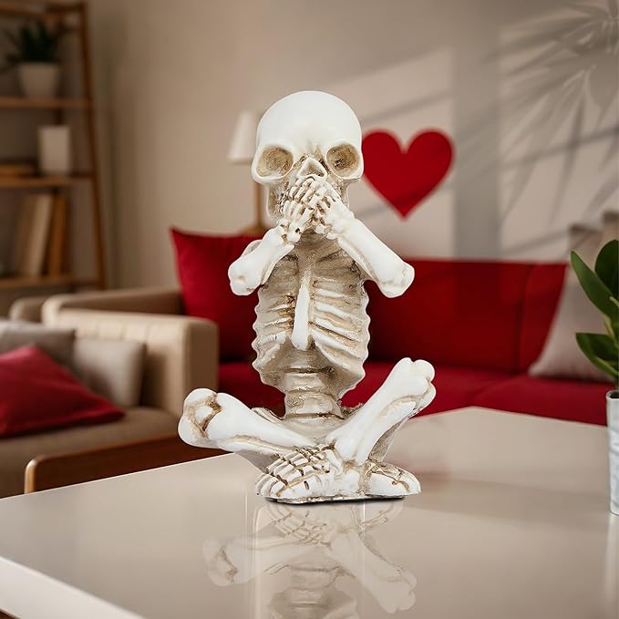 - SET INCLUDES: Comes as a set of 3 identical skeleton figurines in 'see no evil' pose, creating a striking visual display