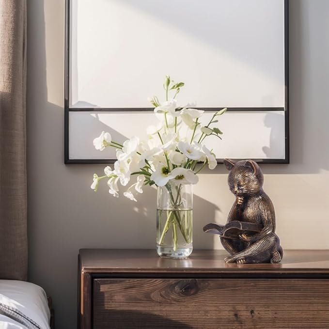 - Premium Resin Craftsmanship: Handcrafted from durable resin, this reading cat figurine features a high-quality bronze finish that resists fading, scratching, and chipping. Each detail is carefully sculpted to highlight the fur texture and book design.