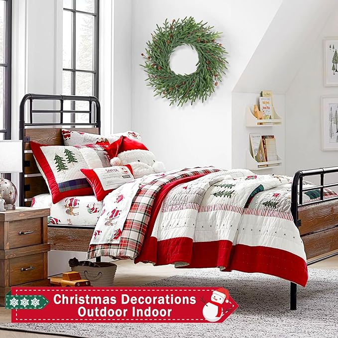- 【 Outdoor Christmas Decorations Yard】: Farmhouse pine wreaths are suitable for home decor such as windows fireplaces front doors porches yards bedrooms tables decor,You can pair it with red berries and ribbons to create a rich Christmas atmosphere