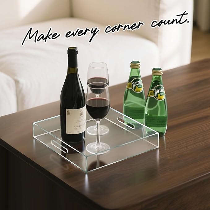 - ✅ Elegant & Modern Design Crafted from premium acrylic with smooth edges, this modern serving tray adds a sleek accent to any space—perfect for a contemporary home or office.