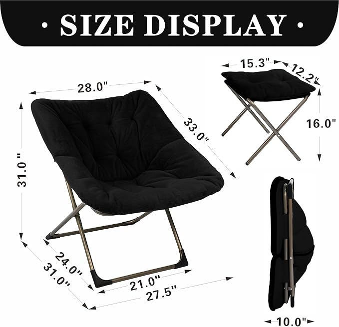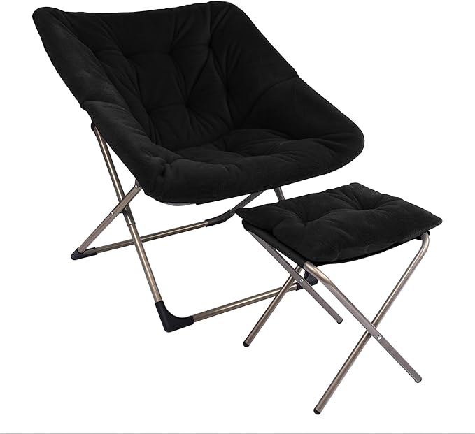 Kokel Plush Folding Chair and Ottoman Padded Metal Frame Living Room Chair (BLACK-TM20)