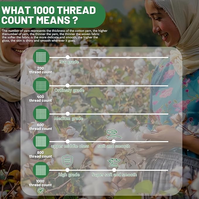 - 1000 THREAD COUNT COTTON: 100% Egyptian cotton sheets are made from high quality cotton which are super soft .Our cooling and comfortable high quality sheets provide you with a high level of silky and elegant
