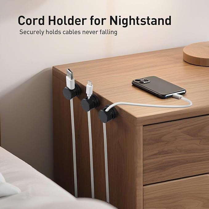 - 【Magnetic Clamp Design】Upgraded Magnetic Wire Clips, Securely Hold Cable Never Falling, Unique magnetic cable organizer, firmly holds and locks cables, 1S Pull and Relax. Perfect Phone Charger Cord holder for nightstand, home, wall, desk, Easy to fix, ready to use
