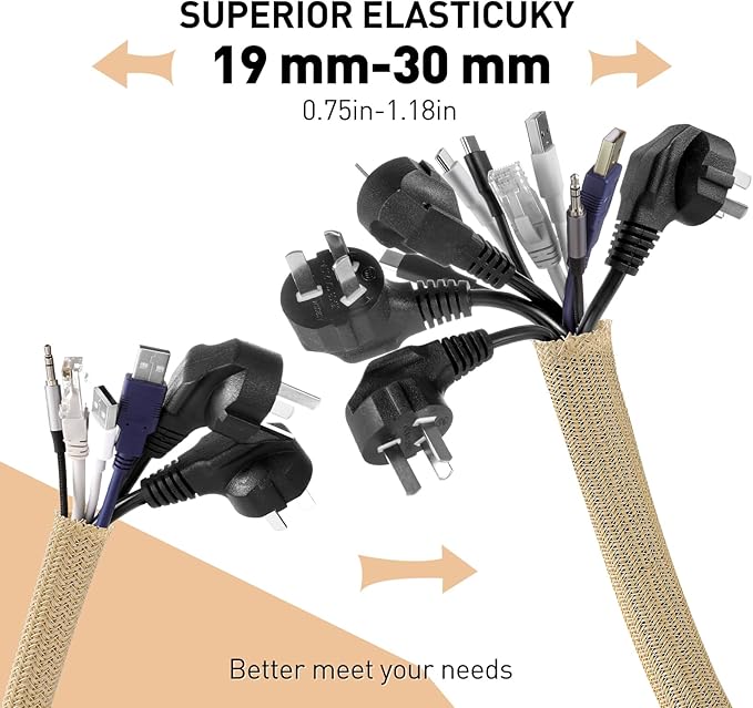 - 【Wire Cover for Many Cables +Easy to cut 】The cable tube can be easily cut with scissors. Length: 2 x 5 feet. Diameter: 0.75-1.2 inch. They can hold different sizes of cables for you. Especially suitable for corners (it is recommended to cut the cutting position with fire after cutting to prevent spreading)