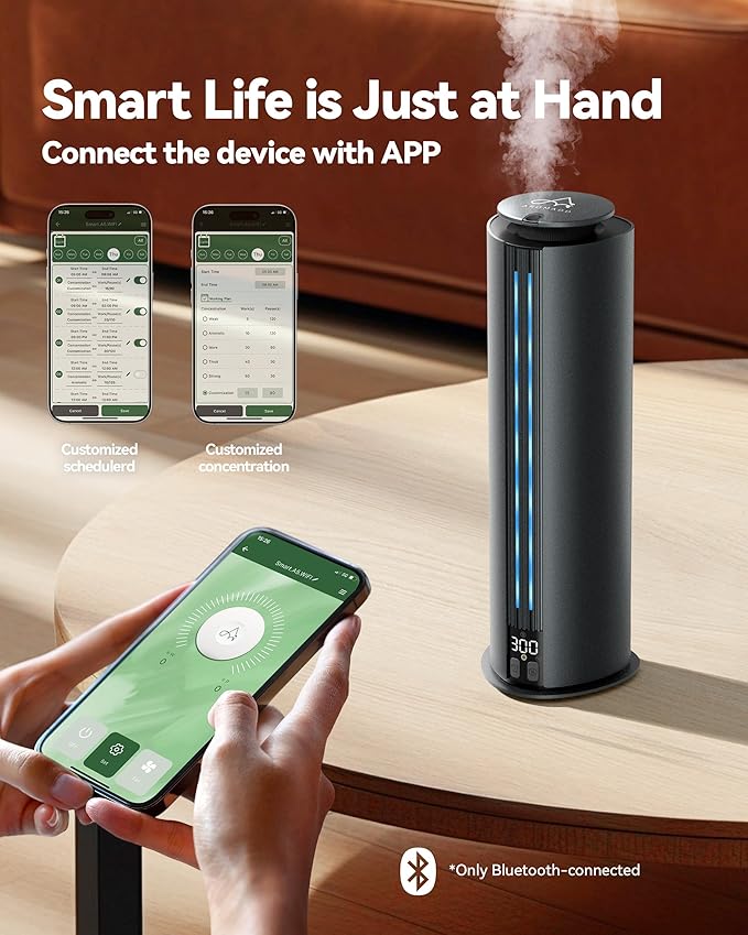 - Smart & Simple Control – Adjust scent intensity and schedule run times right from the companion app, or use the easy-access buttons for quick changes. This waterless diffuser gives you full control, your way. With a generous 100mL capacity, spend more time enjoying your fragrance and less time refilling with this scent diffuser