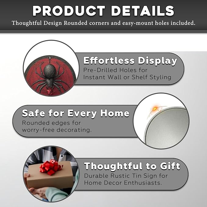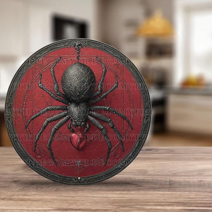 Antique Spider Halloween Tin Plaque - Gothic Round Metal Wall Art for Halloween Night Decor 12 * 12inch