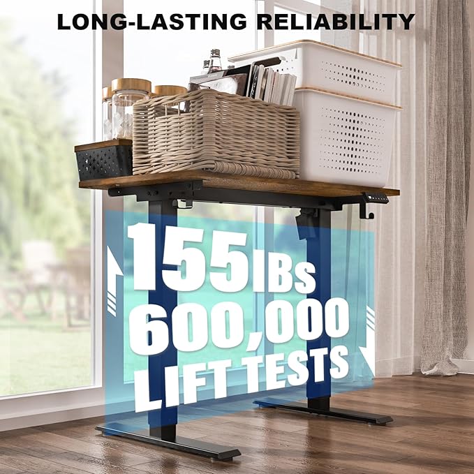 - [Sturdy Construction]: The small standing desk legs of this height-adjustable desk have an industrial steel frame and a T-shaped base that supports 154 pounds. The adjustable electric desk features anti-collision technology and a cable tray for a clutter-free workspace.
