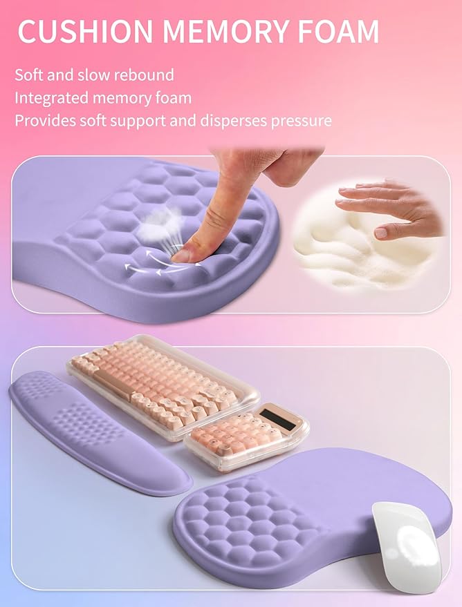 - 【2in1 Set】Wave keyboard wrist rest (17.2x3.8 inches, 436x96mm), allows your hands to maintain a natural typing posture. Mouse pad wrist support (11.8x7.9 inches, 299x199mm), ergonomic curvature, lifts your wrist to relieve pressure, providing you with a comfortable office experience.