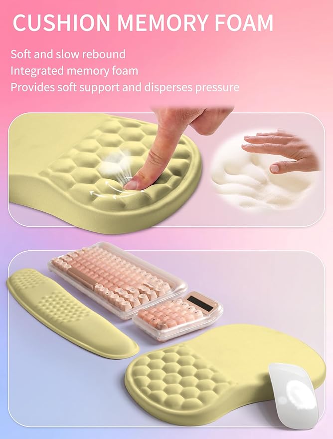 Hokafenle 2in1 Combination, Wave Keyboard Wrist Rest and Ergonomic Curvature Mouse Pad Wrist Support for Relieve Wrist Pain, Filled with Soft Cushion Memory Foam, Butter Yellow
