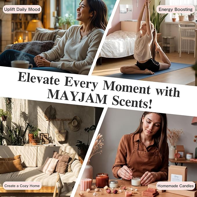 - Wonderful Scent: MAYJAM fragrance oils are highly concentrated and features a soothing and pleasant aroma. Almond & Vanilla essential oils for diffusers for home have an extremely rich, complex and long-lasting fragrance, ideal for enhancing any atmosphere